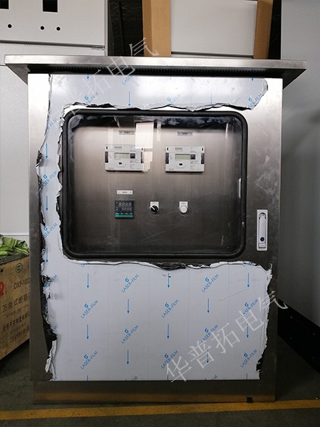 01不锈钢流量积算仪器箱为户外箱,采用不锈钢材质,带防雨帽檐,内外门设计,外门上安装了有机玻璃可视窗,可直观查看箱内仪表参数。内门上安装了两台西门子超声波热量表 FUE950 热表能量积分仪,数显仪表以及指示灯旋钮。